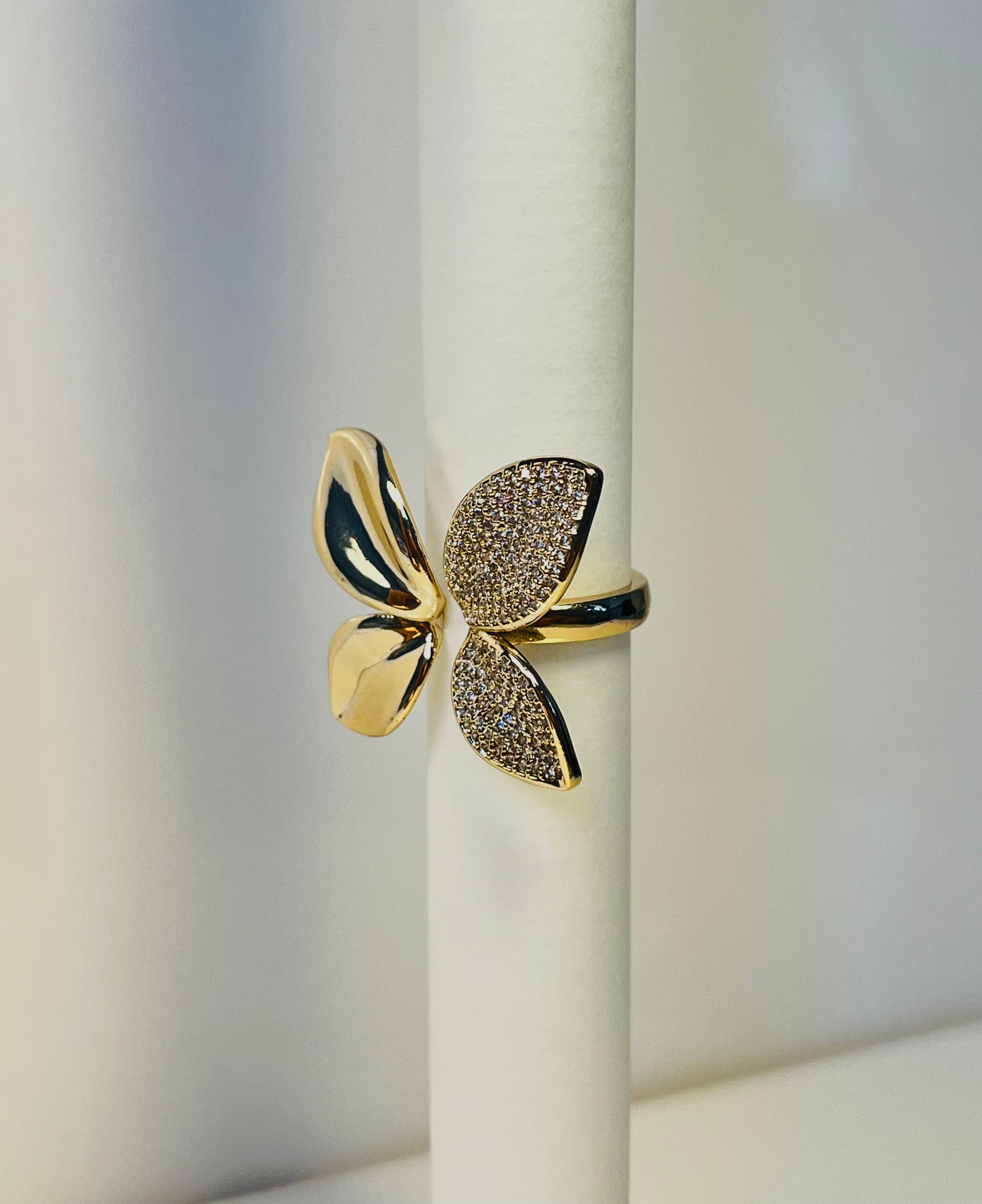 La elegansen din blomstre med Bloom – en gullbelagt ring med fire skulpturerte kronblader, to polert til høy glans og to dekket av strålende zirkonia. Et elegant smykke som fanger naturens skjønnhet i full blomst.