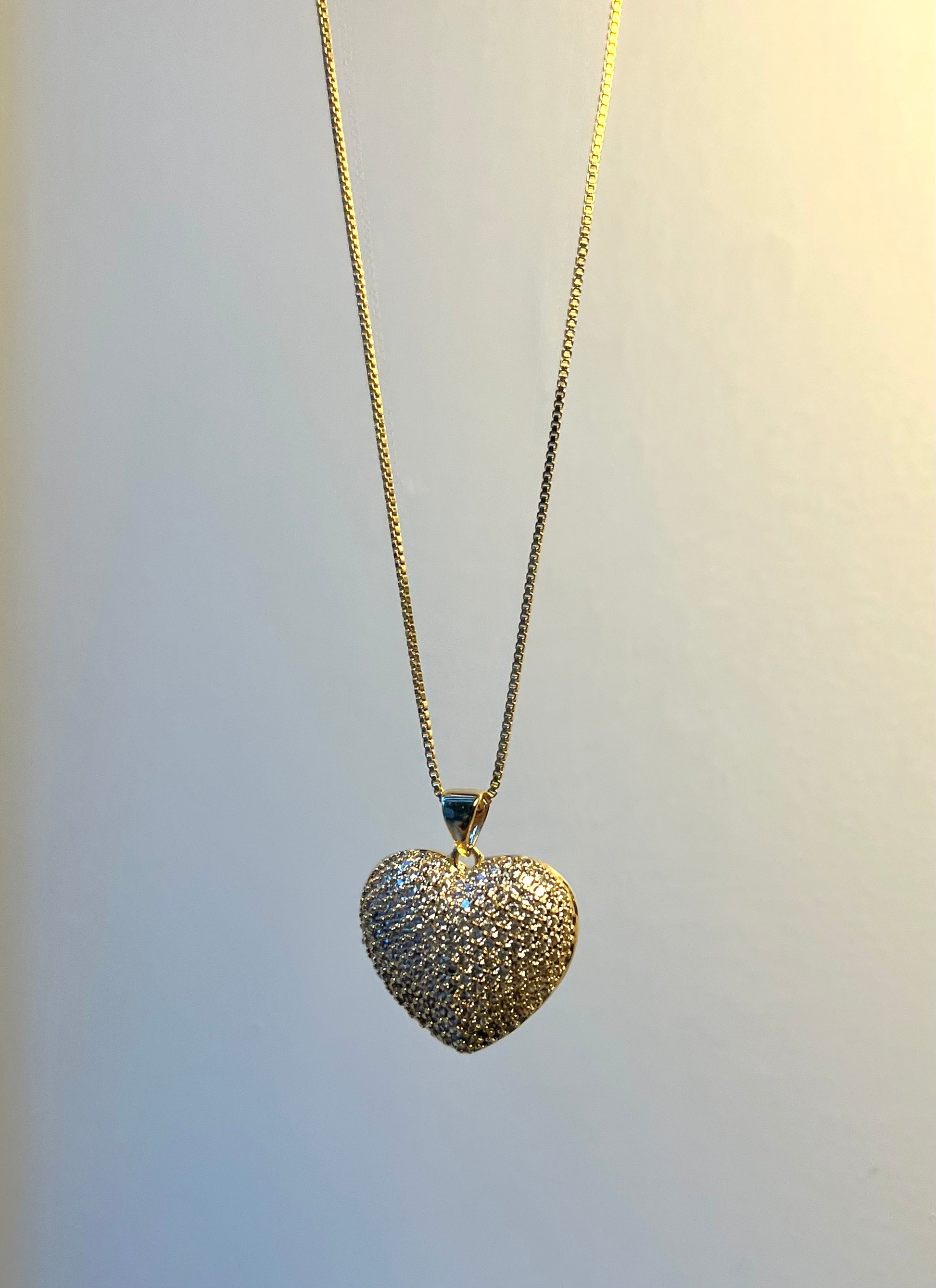 Let love shine with Amour – a heart-shaped pendant encrusted with delicate crystals, designed to glow with every movement. Suspended on a sleek gold-plated chain, it's the perfect balance of romance and elegance.