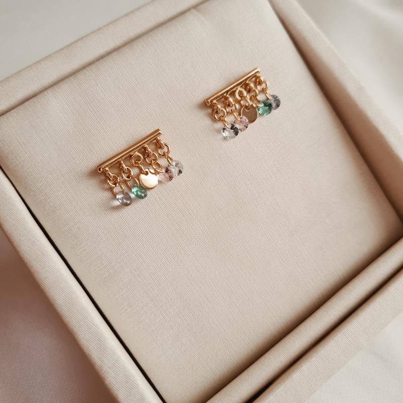 Brisa Earrings – Gold-Plated Breeze Drops with Pastel Crystals