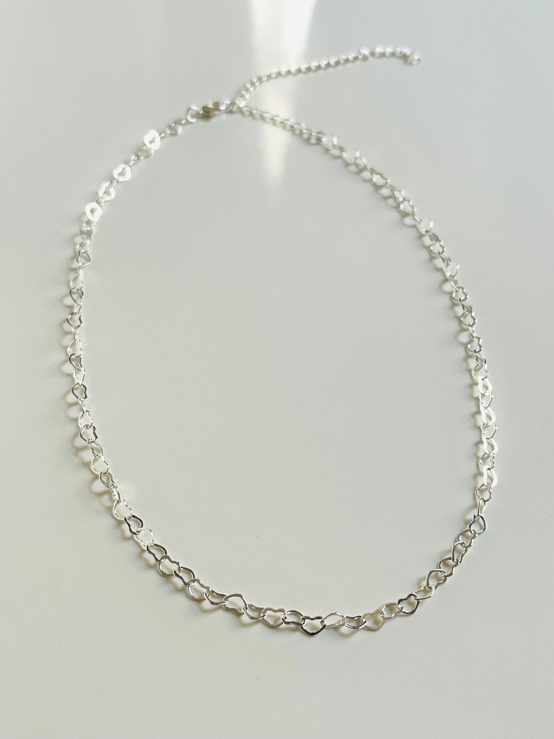 Soft, romantic, and effortlessly elegant — Lovelace is a silver-plated choker featuring a delicate sequence of open-heart links that sit gracefully along the neckline. Feminine and timeless, it’s the perfect piece to wear solo or layer with your favorite chains.